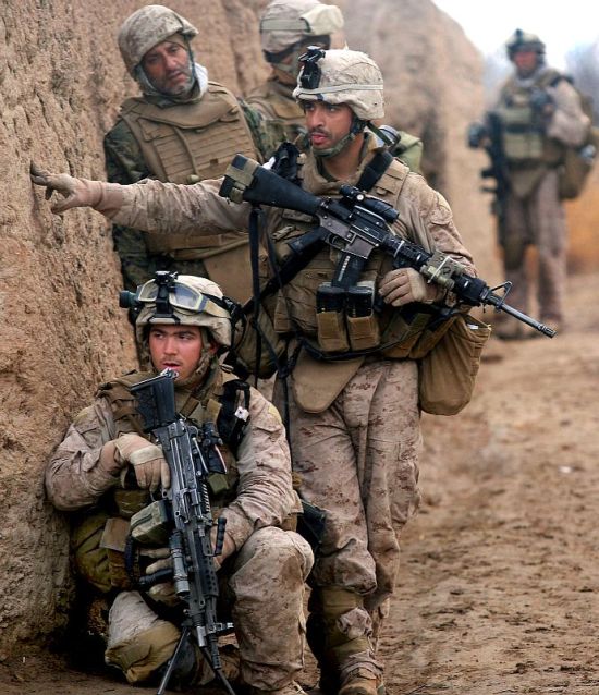 ایک جانب امریکہ اور ناٹو کے جدید اسلحے سے لیس وہ فوجی ہیں جنہوں نے مکمل حفاظتی لباس زیب تن کررکھا ہے، سر پر ہیلمٹ، سینے پر بلٹ پروف جیکیٹ، پتھریلے اور سخت راستوں پر چلنے کے لئے فل بوٹ، حتیٰ کہ گھٹنو ں اور کہنیوں پر حفاظتی پیڈز باندھے گئے تاکہ اگر کہیں زمین پر لیٹ کر آگے بڑھنا پڑے تو گھٹنے اور کہنیاں نہ چھلیں۔
